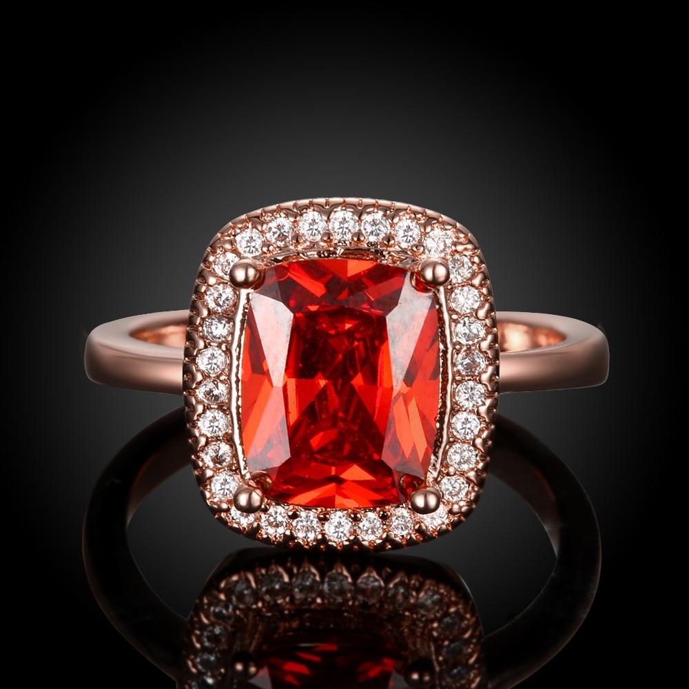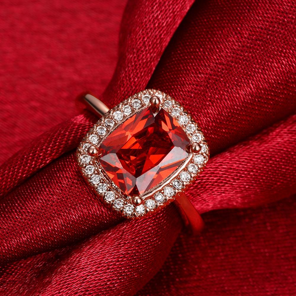 Ruby Emerald Cut 18K Rose Gold Halo Ring